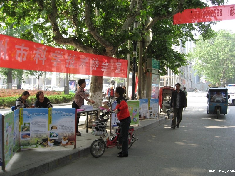 邳州市科协科普志愿者向市民发宣传手册